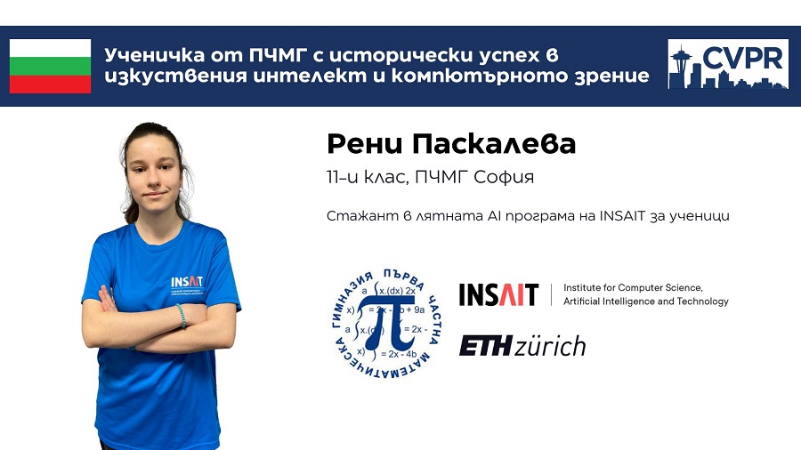 Единадесетокласничката от Първа Частна Математическа Гимназия, Рени Паскалева стана първият български ученик в историята, който записва имената си сред авторите на статия в CVPR – най-авторитетната научна конференция за изкуствен интелект и компютърно зрение в света. Тя е съавтор на разработка, която позволява на машините да разпознават и създават по-реалистични изображения на човешки емоции.