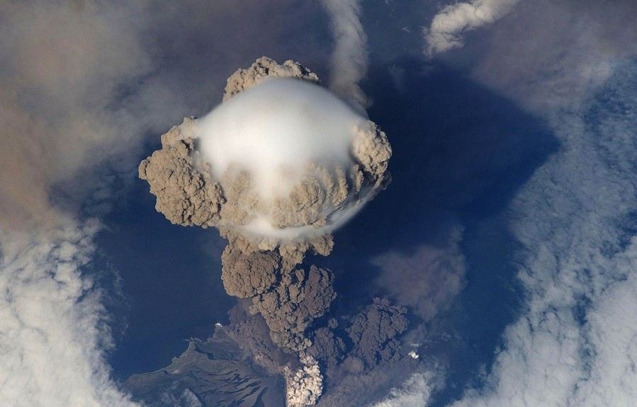 Сателити от военновъздушните сили и космическата агенция на САЩ измерват радиацията от Слънцето в ултравиолетовия спектър. В деня на изригването те са забелязали силна абсорбционна характеристика на надморска височина над 100 километра, показват корелираните данни. Тази надморска височина е известна като линията на Карман, приетата граница на космоса.