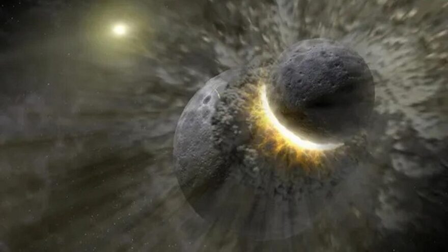 Преди около 4,5 милиарда години малка планета се разбива в Земята. Ударът разпръсква разтопената скала достатъчно далеч в космоса, за да започне да обикаля около нашата планета. С течение на времето тази скала се втвърдява, за да образува нашата Луна.