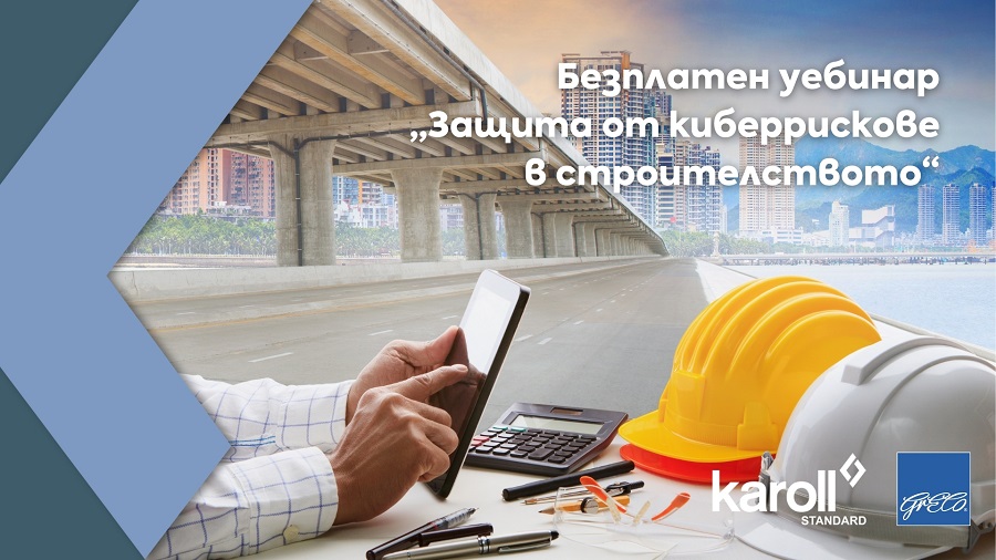 След успешния първи уебинар през април, посветен на застраховките в строителството, на 24 юни от 11 ч. Karoll Standard и GrECo Bulgaria организират безплатен уебинар на тема „Защита от киберрискове в строителството“.