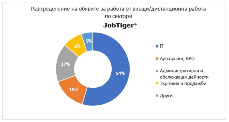 При разпределение по сектори над половината от този тип предложения е в сектор „ИТ“ (54%), следван от „Административни и обслужващи дейности“ (17%), секторите на аутсорсинг (BPO) индустрията (15%) и „Търговия и продажби“ (8%).