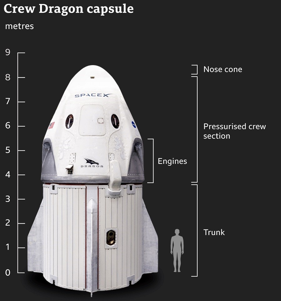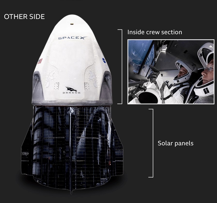 Стъкленият купол е монтиран на мястото на механизма, който Dragon обикновено използва за скачване с МКС, което не е необходимо при този полет.