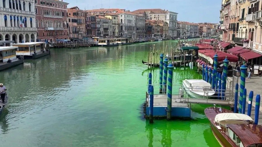 „Тази сутрин петно от фосфоресцираща зелена течност се появи в Канале Гранде на Венеция, съобщено от някои жители близо до моста Риалто. Префектът свика спешна среща с полицията, за да разследват произхода на течността“, написа в Туитър Лука Зая, президент на регион Венето в Италия.