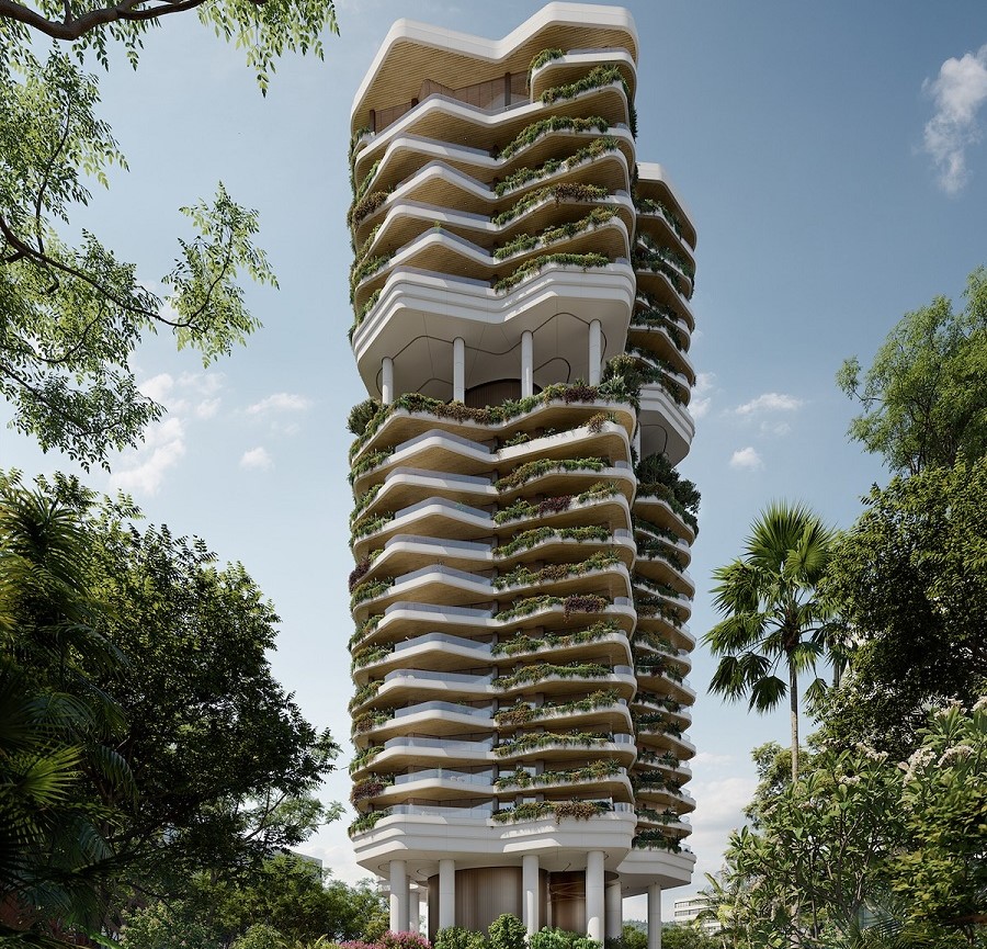 Creators PLP Architecture проектира сградата, използвайки биофилни дизайнерски качества и включва буйна зеленина, за да свърже жителите с природата.