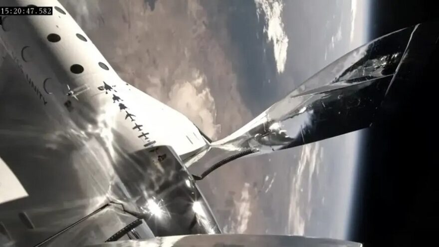 Космическият самолет на Virgin Galactic, VSS Unity, се отдели от своя самолет-носител VMS Eve малко след излитането и след това включи двигателя си, за да лети с екипажа до суборбиталното пространство, достигайки максимална височина от приблизително 55 мили (88 километра).