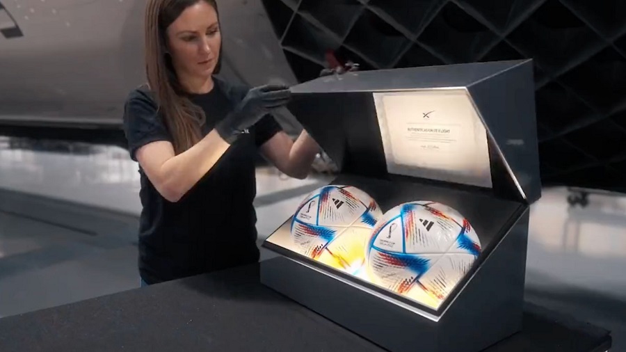 „От космоса до футболното игрище. Донесохме официалните топки за Световното първенство по футбол в Катар, като станахме част от това историческо пътешествие извън света заедно с @SpaceX и @FIFAcom“, написаха в Туитър Qatar Airways.