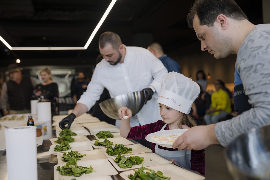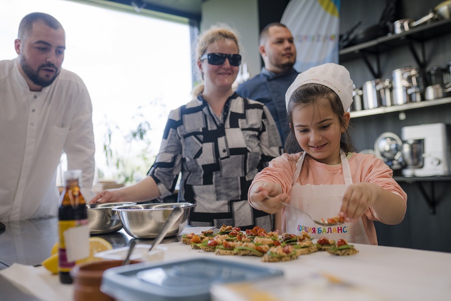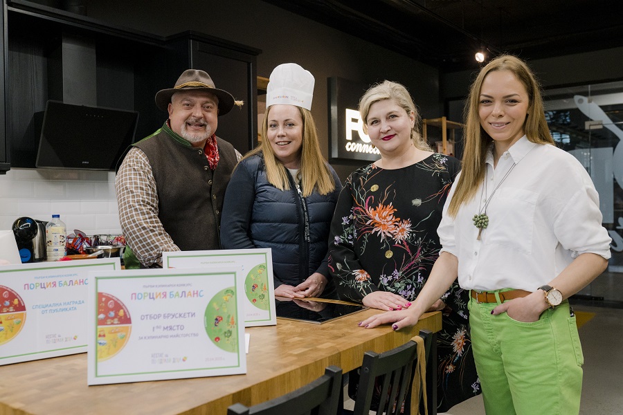 В приятната атмосфера на пространството Food Connection, пресъздаваща уюта на домашната кухня, но снабдена с всички необходими условия за професионално готвене, гостите и участниците в първия кулинарен конкурс на „Порция баланс“ за деца и родители с нарушено зрение готвиха и се забавляваха заедно.