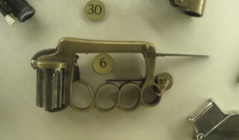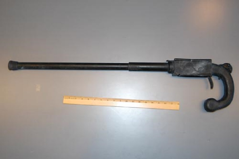 Следващия експонат в списъка от интересни комбинирани оръжия е бастун, в който е скрит пистолет. Тези оръжия са били средство за самозащита в периода след Френската революция, когато не е имало установени полицейски сили, а носенето на оръжие на обществени места е било все по-неодобрявано.