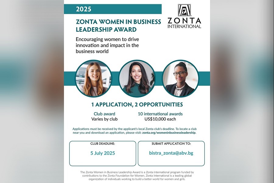 Zonta International официално даде старта на кандидатстването за новото издание на наградите „Women in Business Leadership“, които отличават, подкрепят и насърчават младите жени с изключителни лидерски качества в сферата на бизнеса.