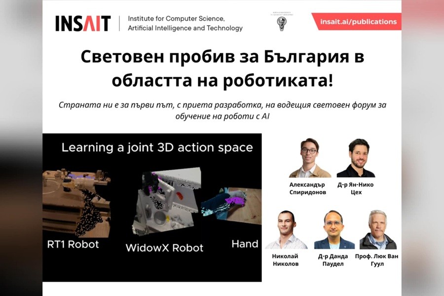 За първи път в историята на България изследване, разработено в Института за компютърни науки, изкуствен интелект и технологии (INSAIT) към Софийския университет „Св. Климент Охридски“ беше прието и ще бъде представено на Conference on Robot Learning (CoRL) 2025 – водеща световна конференция за роботика, която се провежда от 27 до 30 септември в Сеул, Южна Корея.
