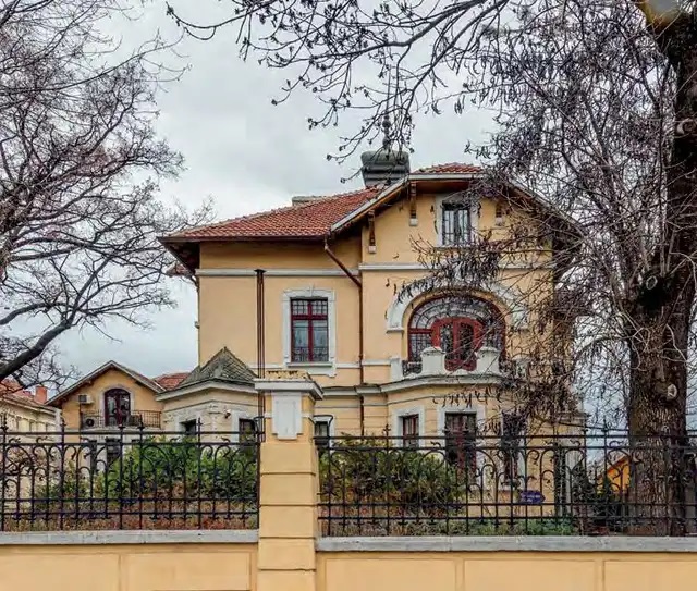 3. Изящният дом на Димитър Мамарчев от 1909 г. на бул. „Евлоги и Христо Георгиеви“ №117 – съвместен проект с Георги Фингов. Островърхата кула и фронтонът (челната арка) с женска глава впечатляват минувачите.