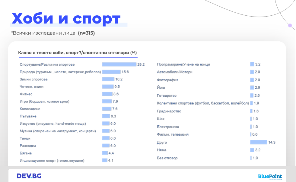 Още един мит бива разбит с проучването на DEV.BG – IT хората спортуват и то с голямо разнообразие на физическите активности. Това показва и друга анкетa на DEV.BG от месец май 2022г.