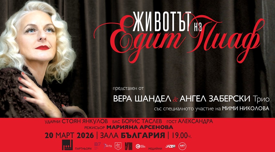 Има гласове, които продължават да звучат независимо от времето. Има истории, които се разказват отново и отново, защото носят пулса на една епоха. На 20 март 2026 г. от 19:00 ч. в Зала „България“ София сцената ще се превърне в пространство, където животът на Едит Пиаф ще бъде пресъздаден чрез музиката и присъствието на Вера Шандел & Ангел Заберски Трио.